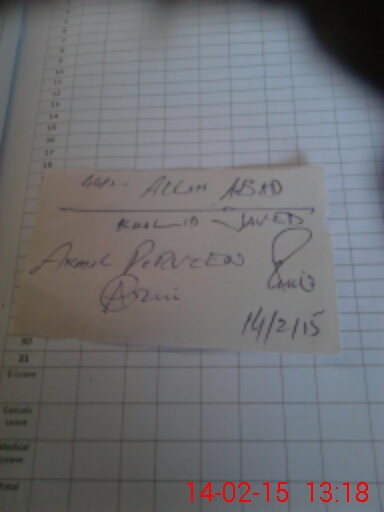 | CNIC | Full Name | Designation | R/C | Absence During Last Calender Month |
