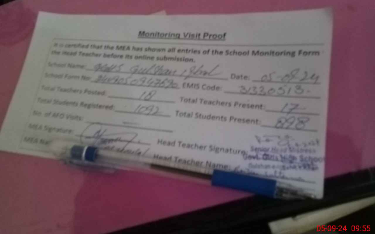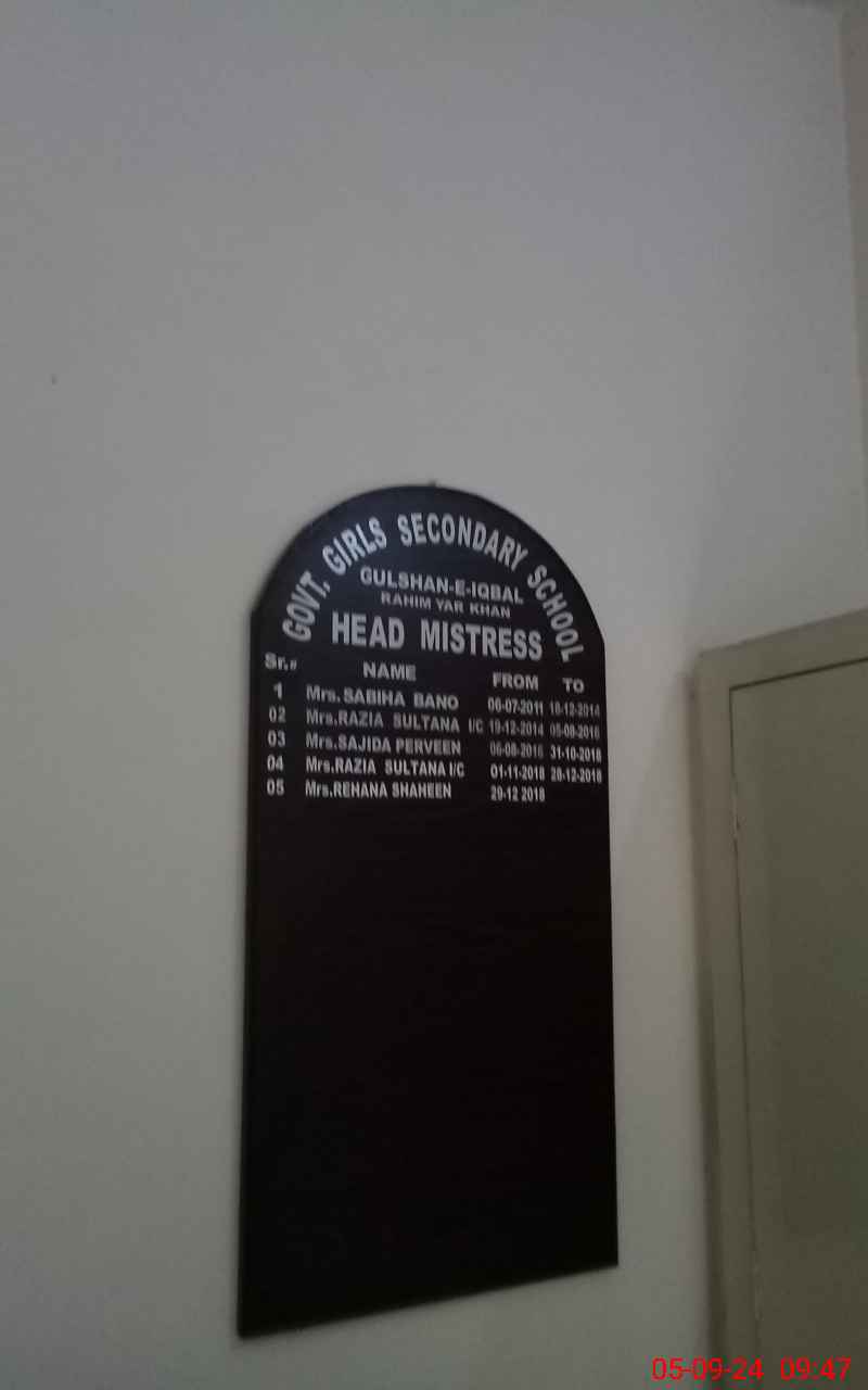 | EMIS Code: 31330513 | Name of School: GGHS GULSHAN IQBAL | |||