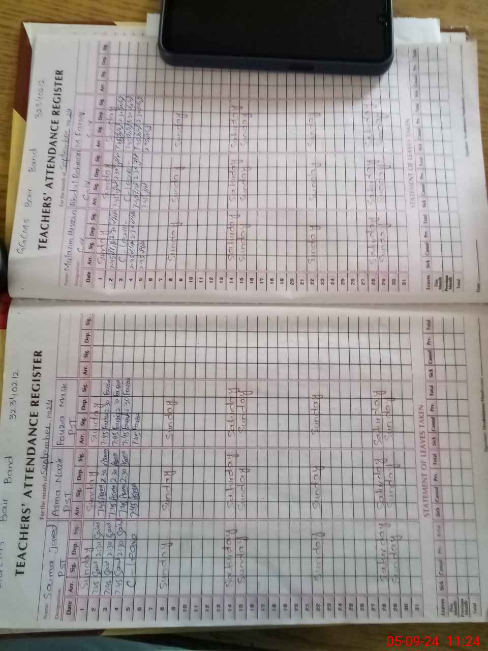 | Leave | Duty | Absent | Maternity | Medical | Ex- Pak |
