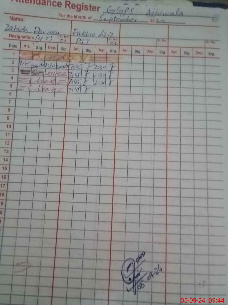 | Name: Za**** Pe**** Designation: (School Headmaster's/Headmistress's) PST Phone/Cell Number: 03**** |