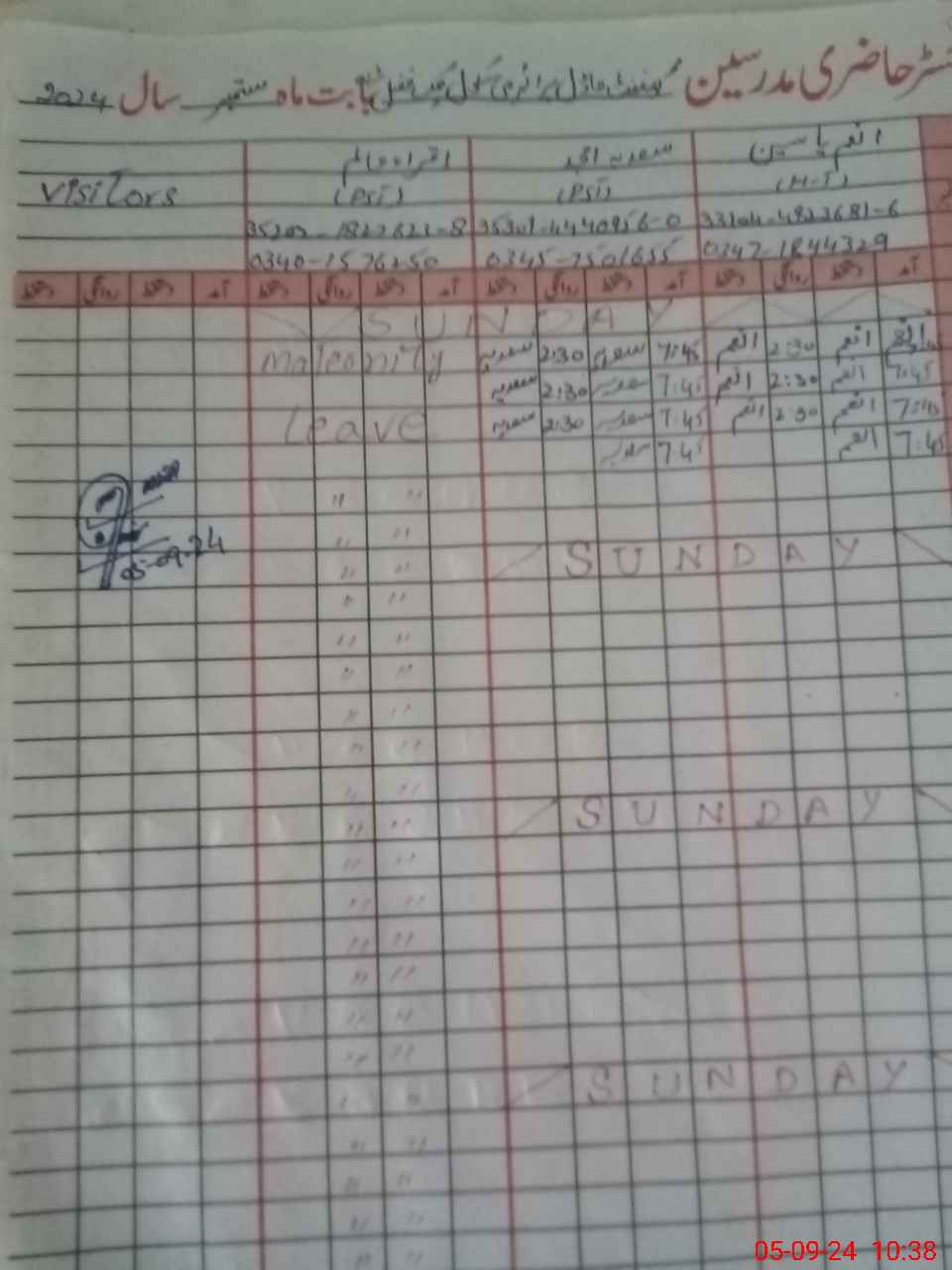 | 35**** | Iq**** Al**** | PST | Regular | 30 | 0 | 0 | 30 | 0 | 0 | 0 | 0 | 0 | Maternity |