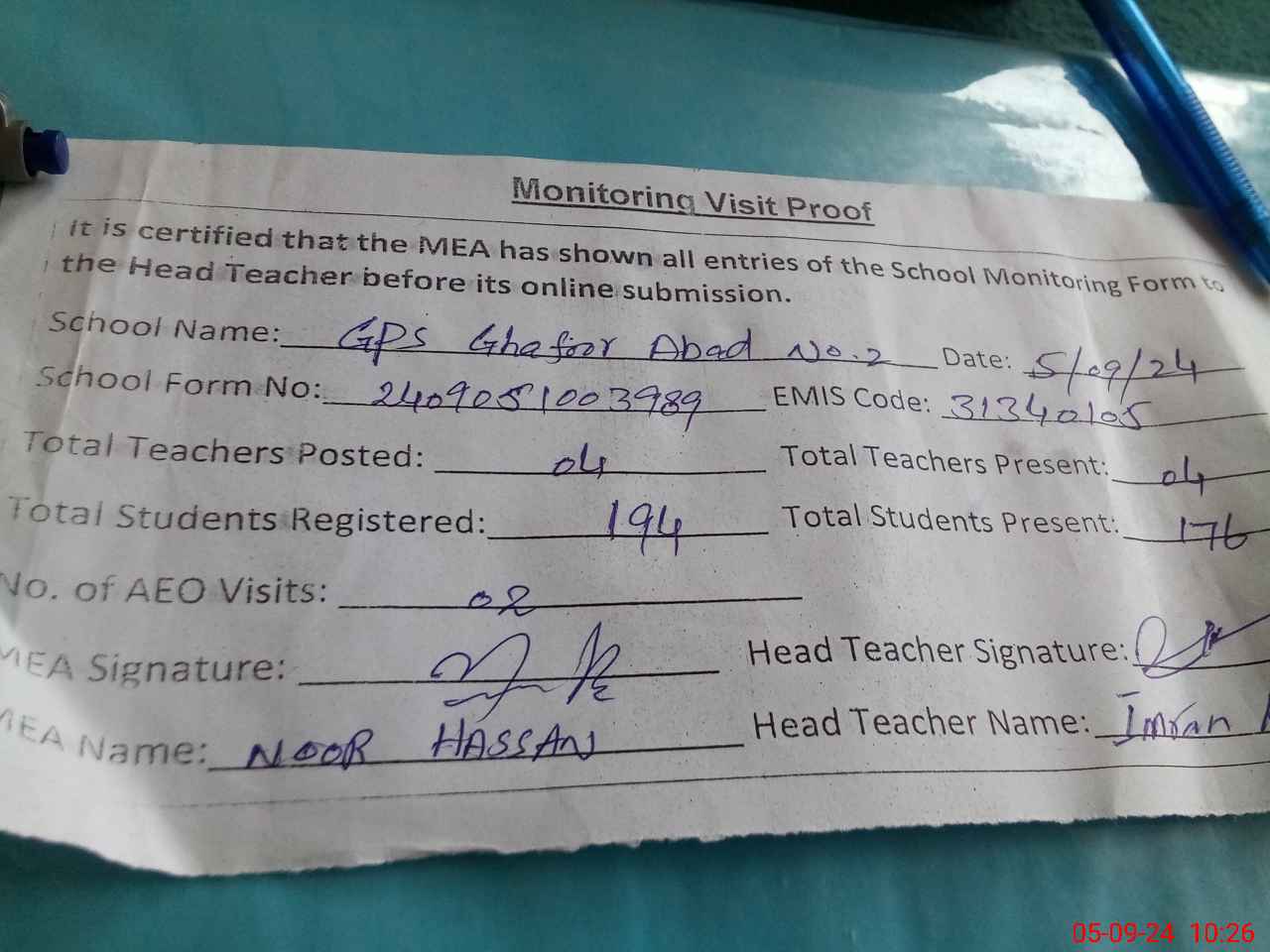 | EMIS Code: 31340105 | Name of School: GPS GHAFOOR A SADIQABAD NO.2 | |||