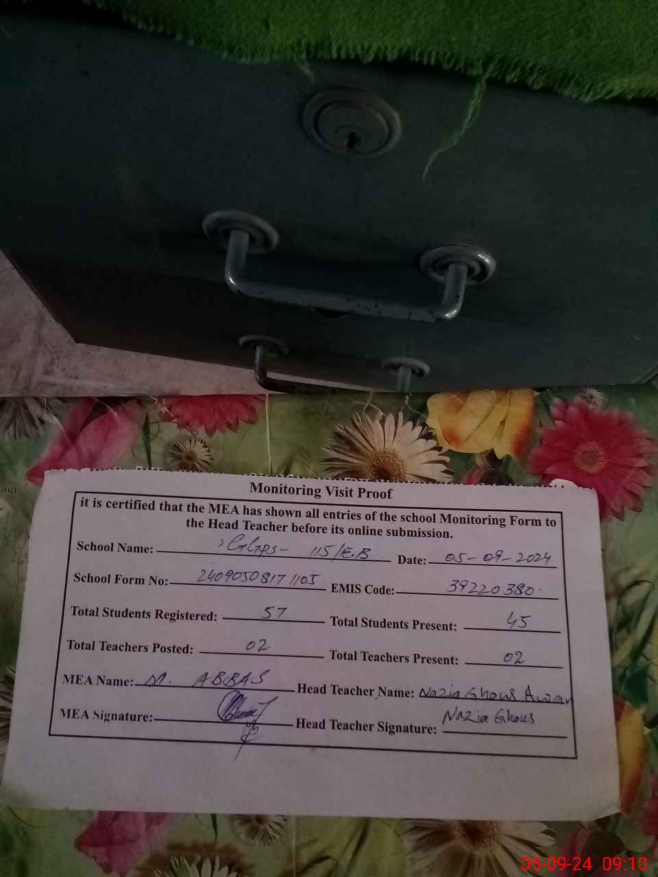 | Attendance Register | Head Teacher | MEA with School | Visit Proof |