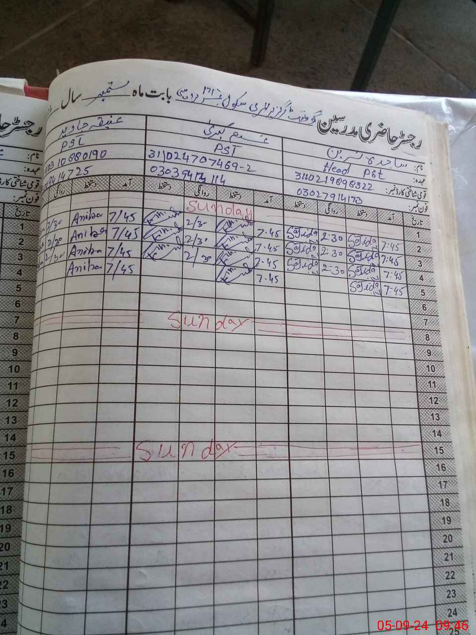 | Name: SA**** NA**** Designation: (School Headmaster's/Headmistress's) PST Phone/Cell Number: 03**** |