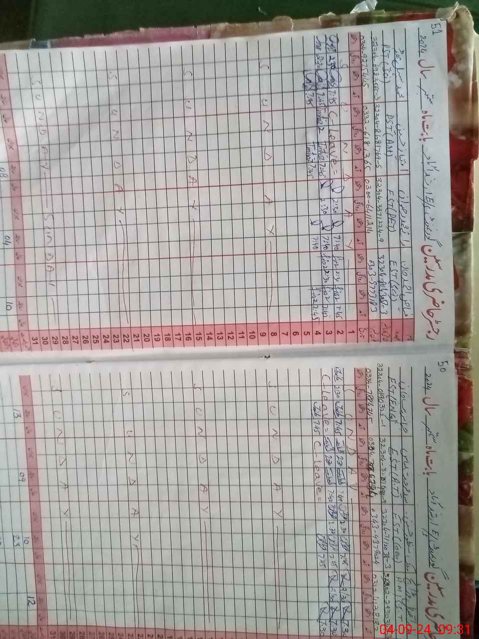 | CNIC | Full Name | Designation | R/C | Absence During Last Calender Month |