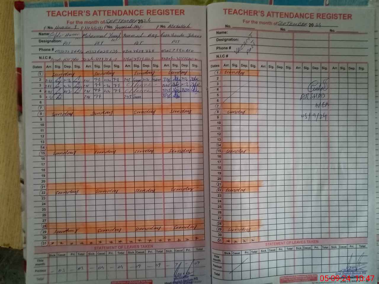 | Name: SA**** HU**** Designation: (School Headmaster's/Headmistress's) PST Phone/Cell Number: 03**** |
