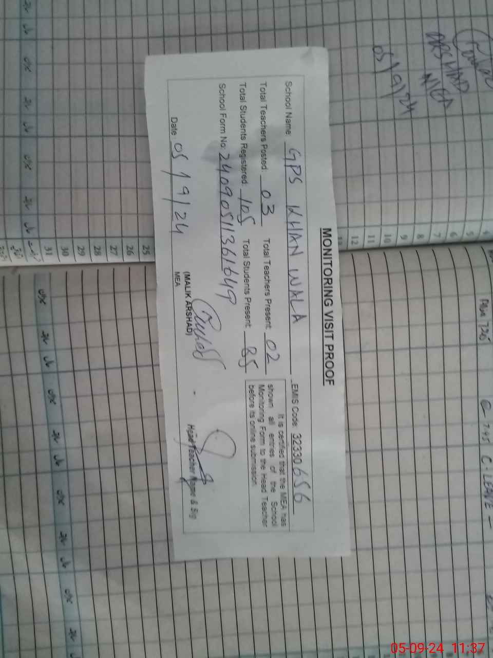 | EMIS Code: 32330656 | Name of School: GPS KHAN WALA | |||