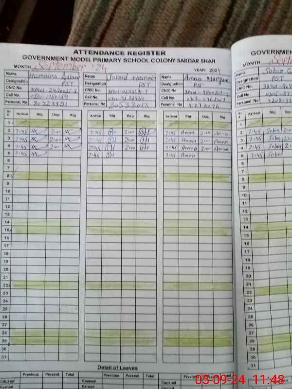 | CNIC | Full Name | Designation | R/C | Absence During Last Calender Month |