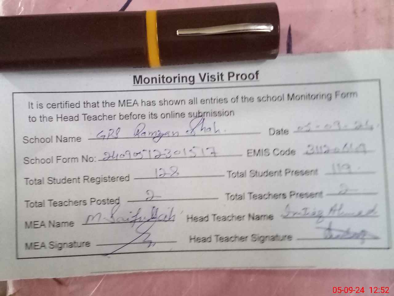 | EMIS Code: 31120649 | Name of School: GPS RAMZAN SHAH | |||
