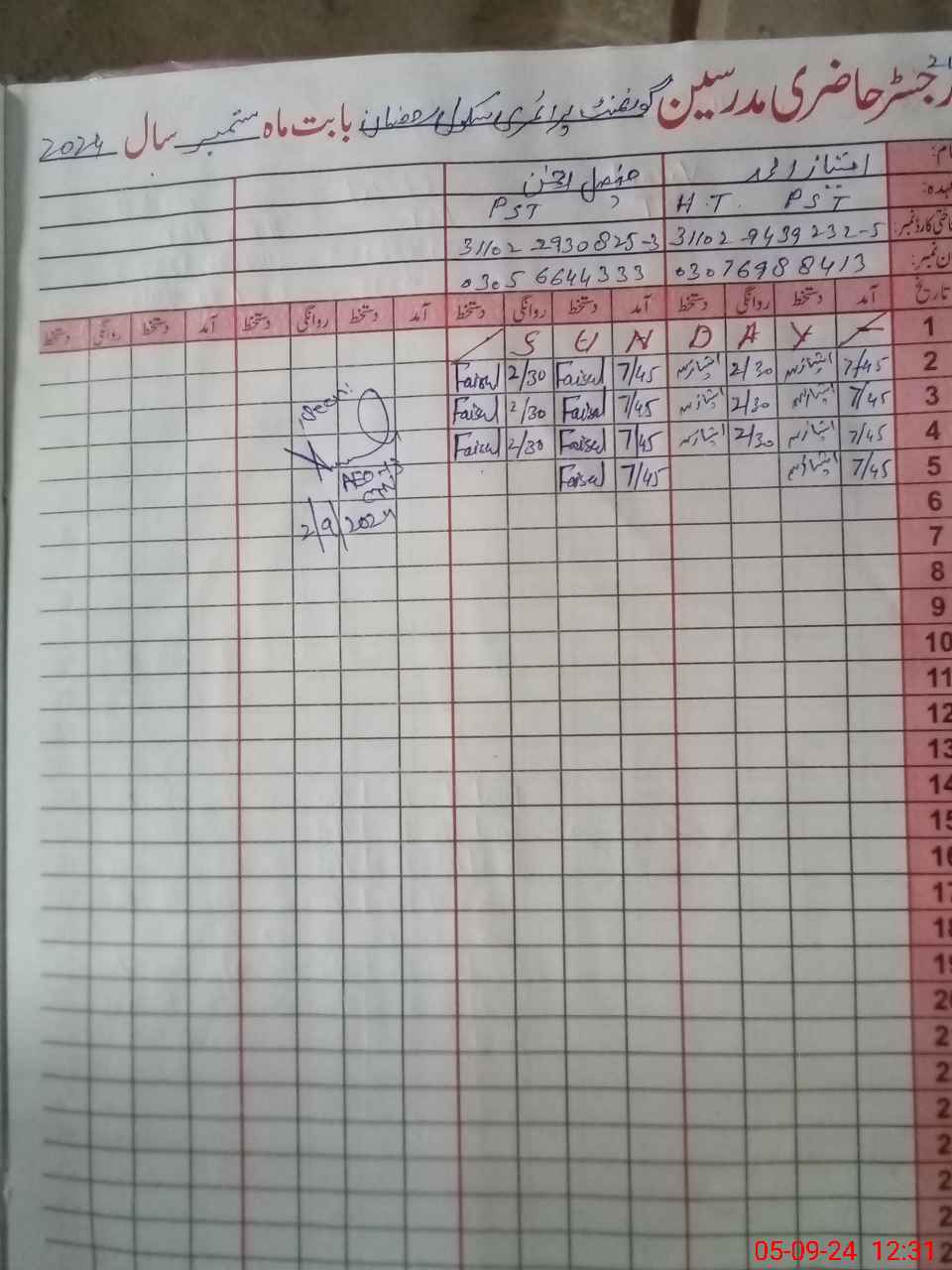 | Name: IM**** AH**** Designation: (School Headmaster's/Headmistress's) PST Phone/Cell Number: 03**** |