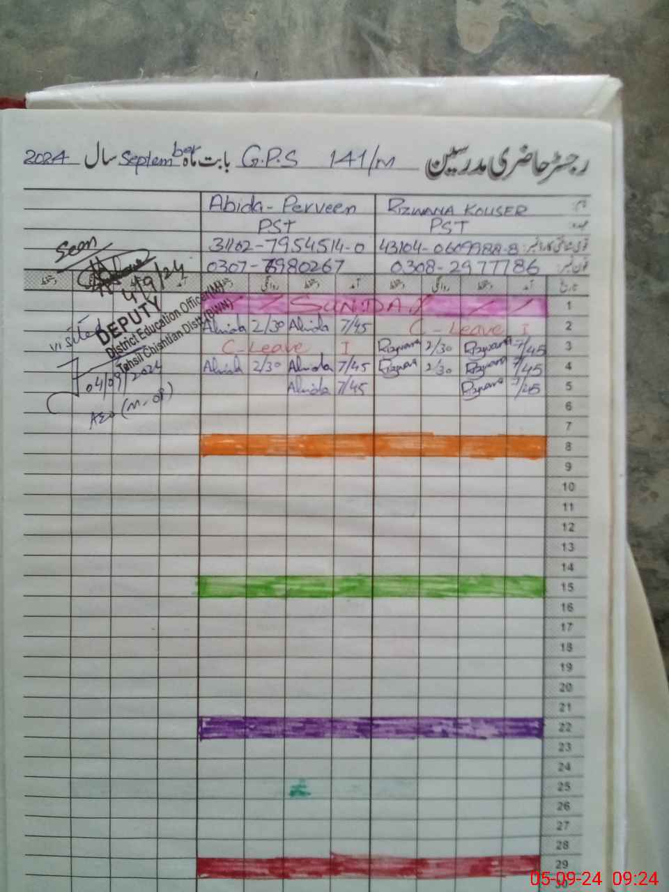 | Name: RA**** KO**** Designation: (School Headmaster's/Headmistress's) PST Phone/Cell Number: 03**** |