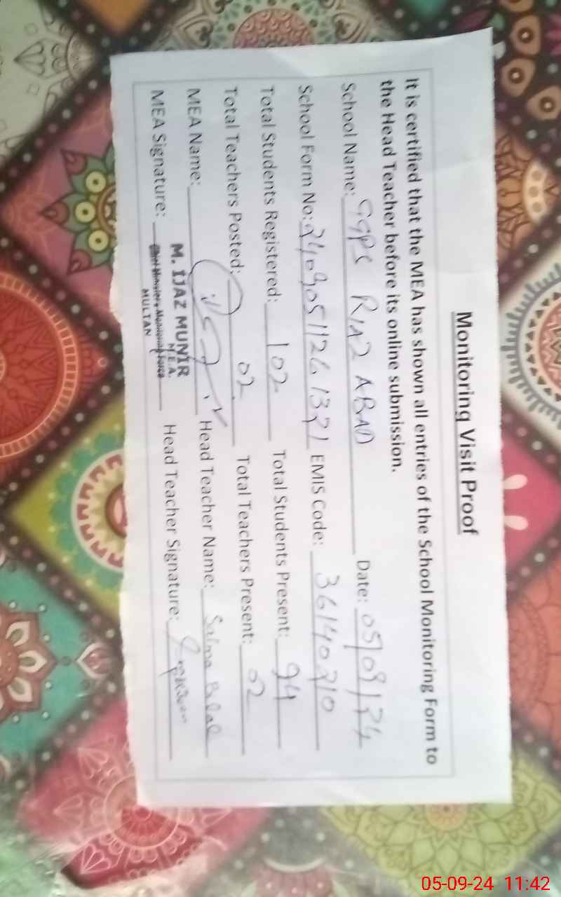 | EMIS Code: 36140210 | Name of School: GGPS RIAZ ABAD BASTI ILYAS WALA | |||