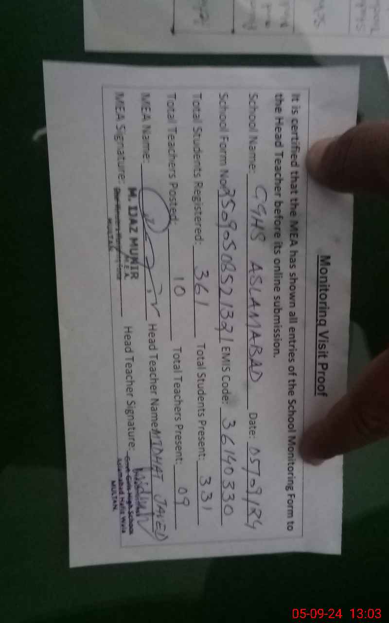| EMIS Code: 36140330 | Name of School: GGHS ASLAM ABAD (HAFIZ WALA) | |||