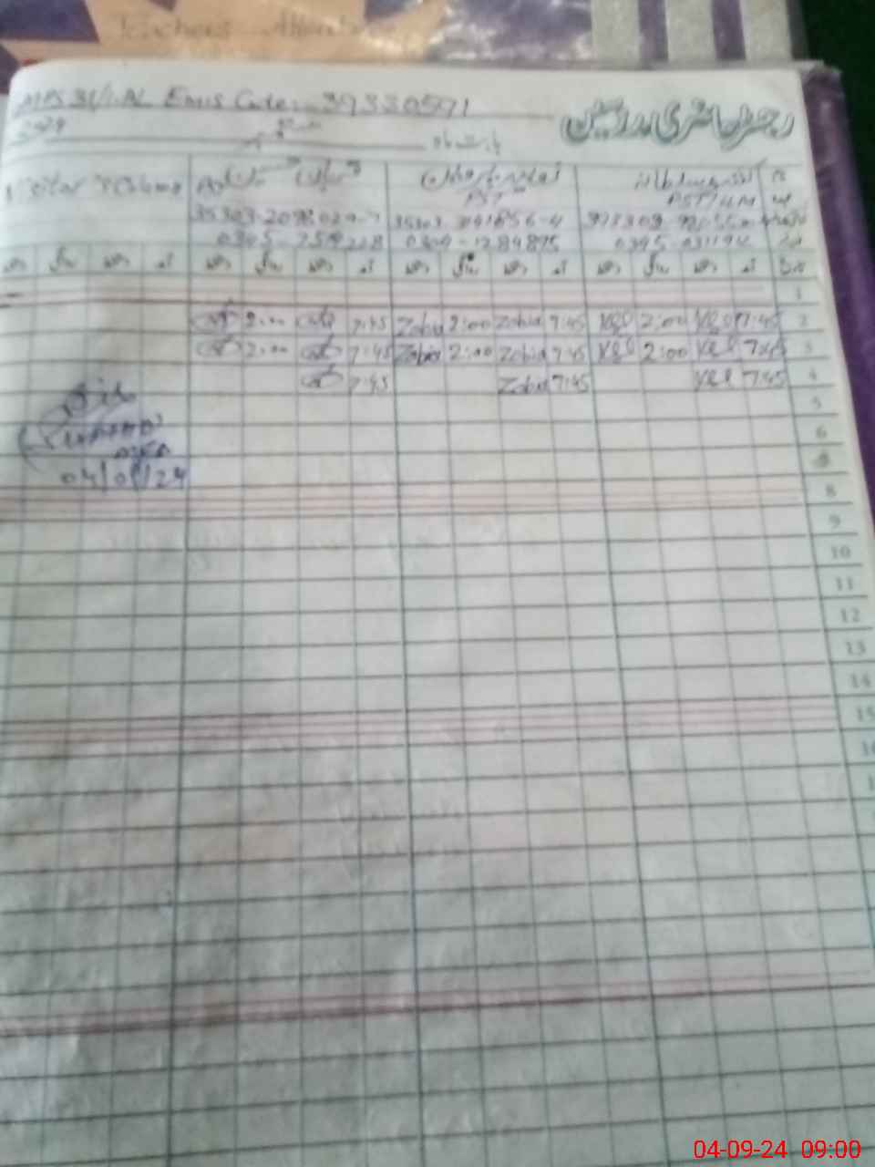 | Monitoring Date: 04-09-2024 | Start Time: 04-09-2024 08:57 AM | End Time: 04-09-2024 09:16 AM | Name of MEA: SH**** YO**** | |