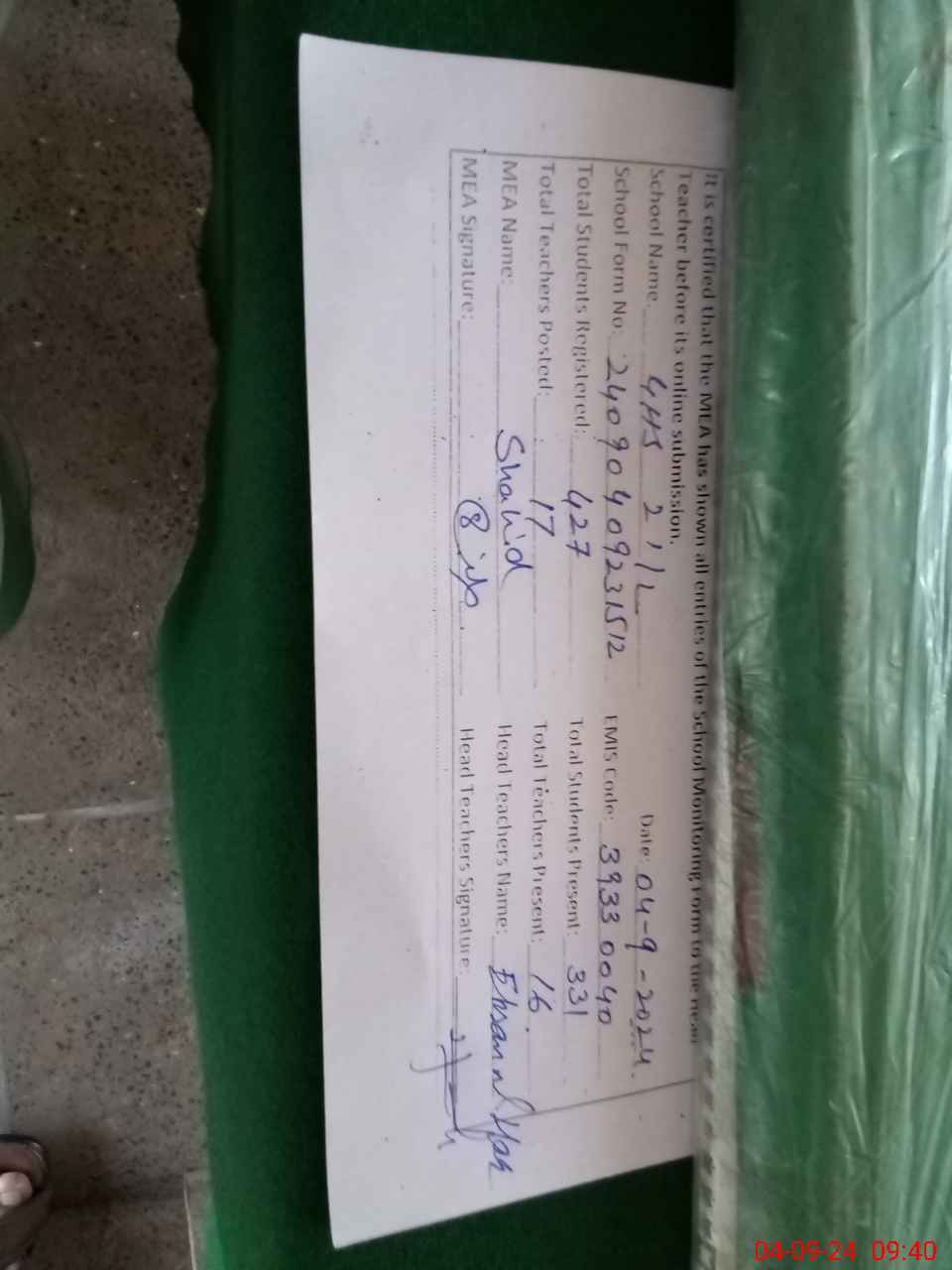 | Name: Eh**** UlHa**** Za**** Designation: (School Headmaster's/Headmistress's) Headmaster Phone/Cell Number: 03**** |