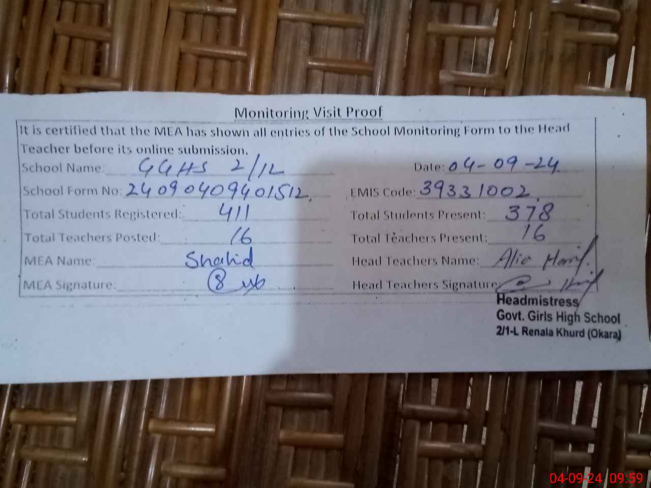 | Name: AL**** HA**** Designation: (School Headmaster's/Headmistress's) S.S.E.(SC) Phone/Cell Number: 03**** |