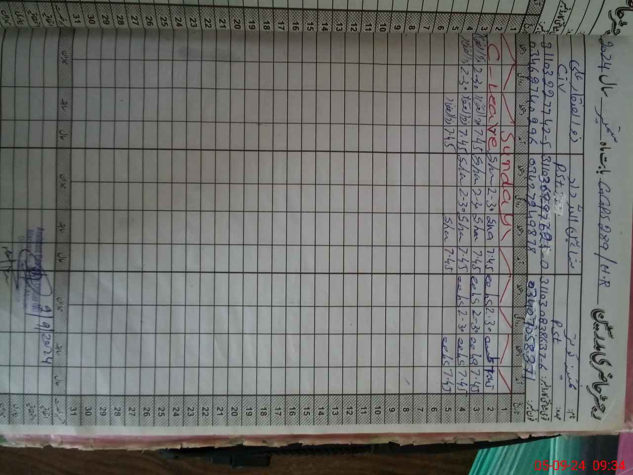 | CNIC | Full Name | Designation | R/C | Absence During Last Calender Month |