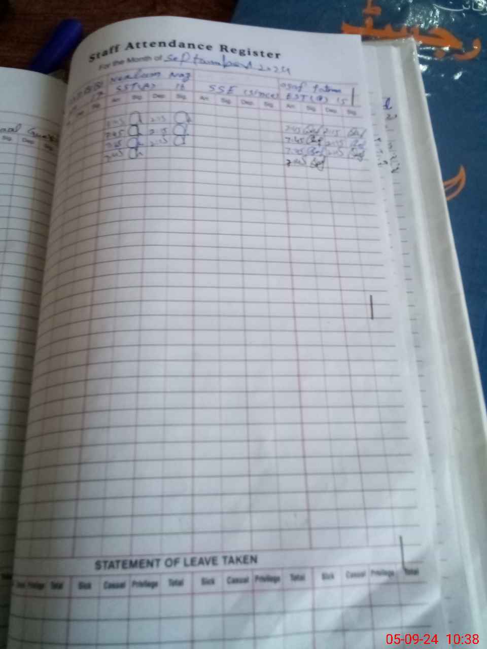 Leave Type | Remarks for Today (Leave,Training, Exam,Absent,Late, Other Duty) |