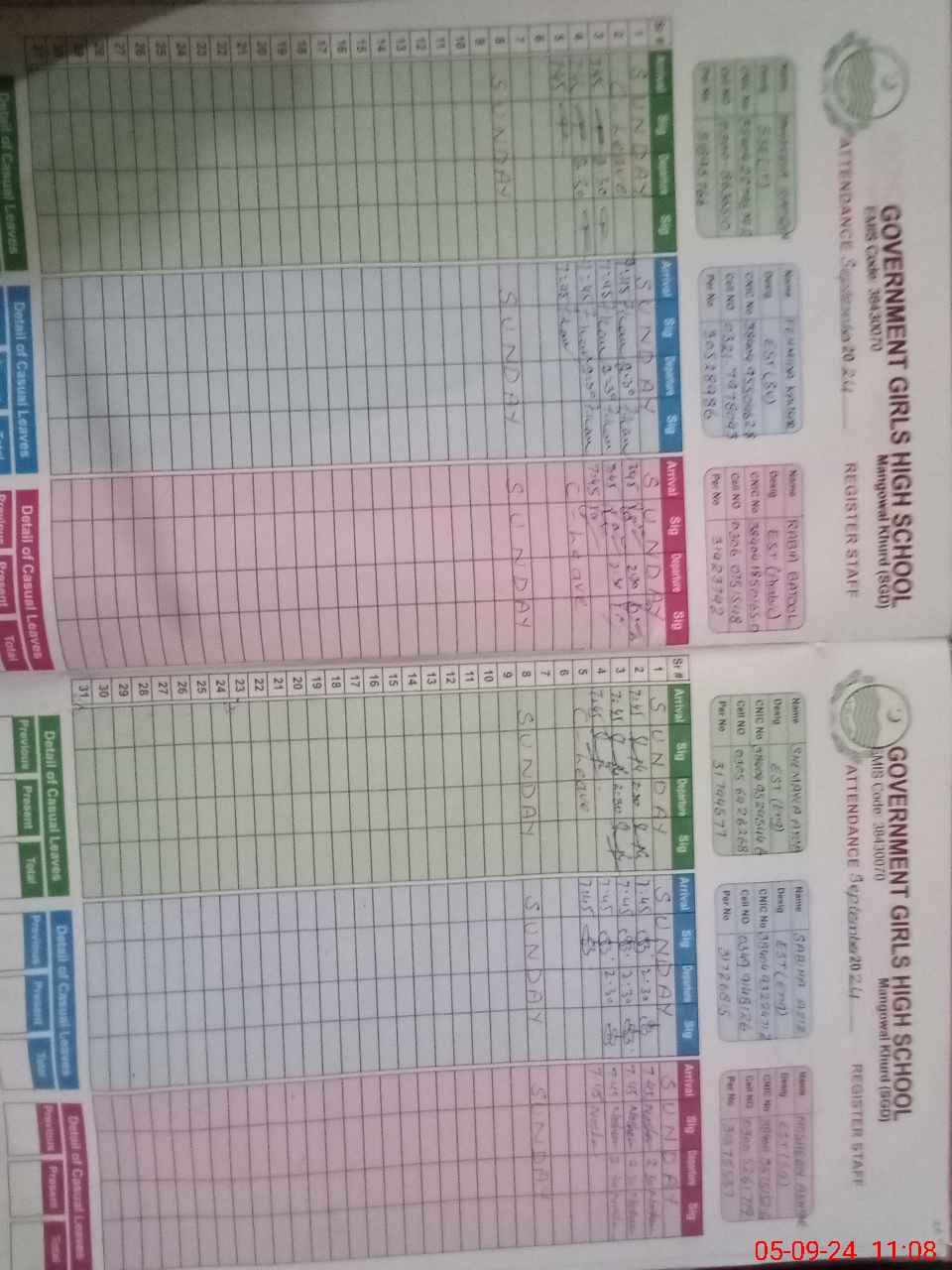 | CNIC | Full Name | Designation | R/C | Absence During Last Calender Month |