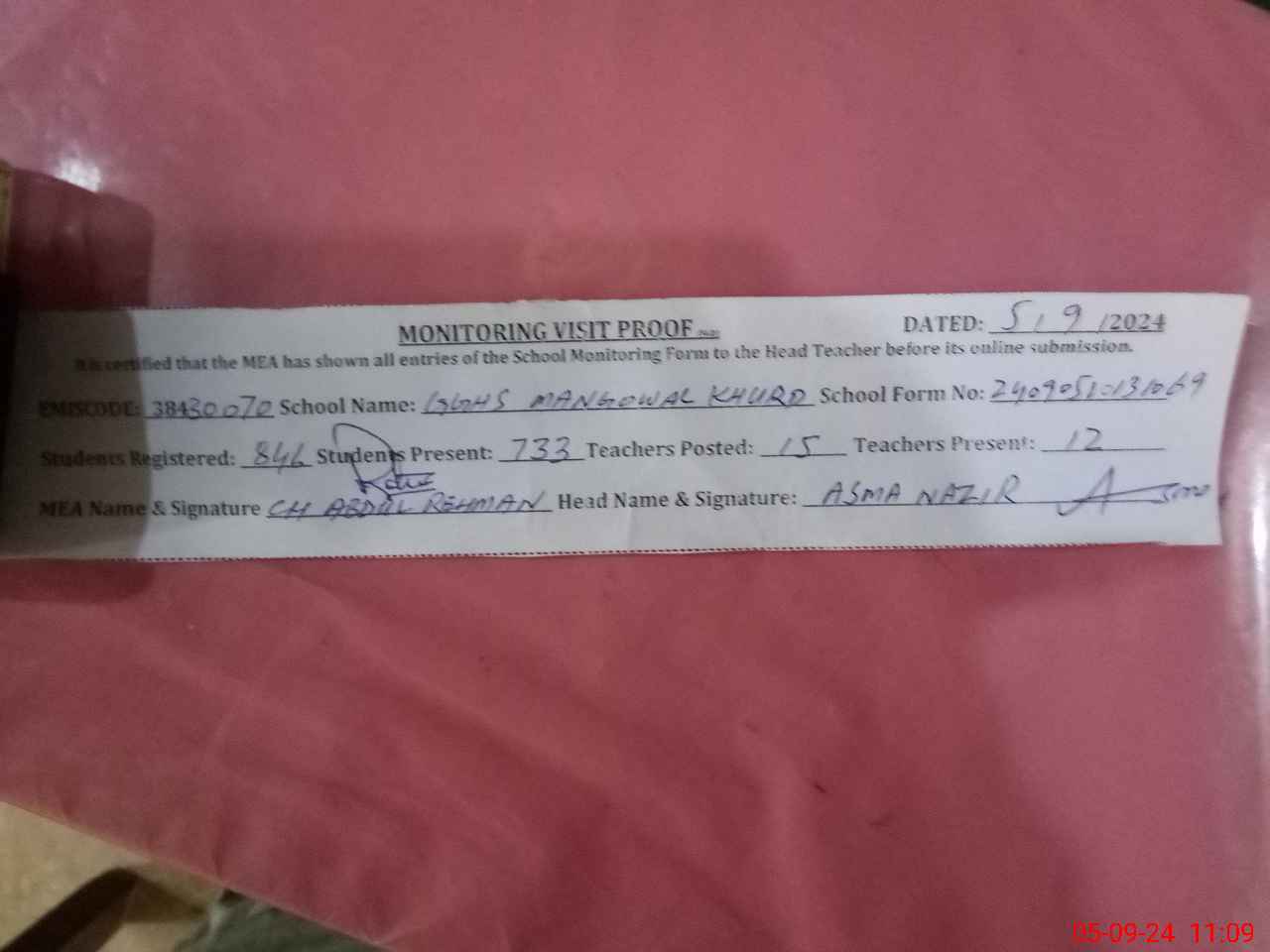 | EMIS Code: 38430070 | Name of School: GGHS MANGOWAL KHURD | |||