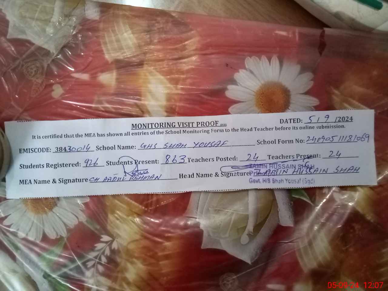 | EMIS Code: 38430014 | Name of School: GHS SHAH YOUSAF SHAHPUR | |||