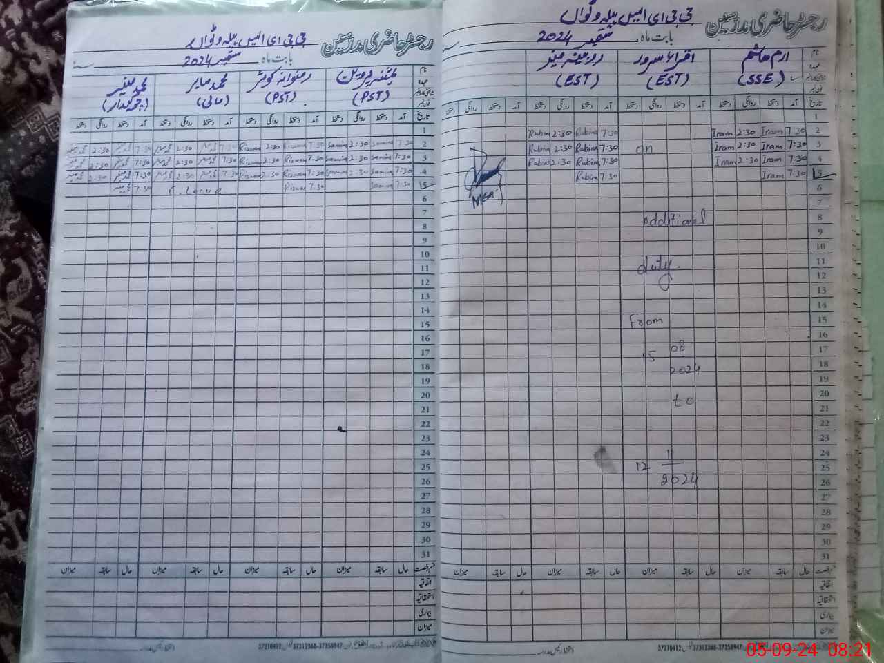 | CNIC | Full Name | Designation | R/C | Absence During Last Calender Month |