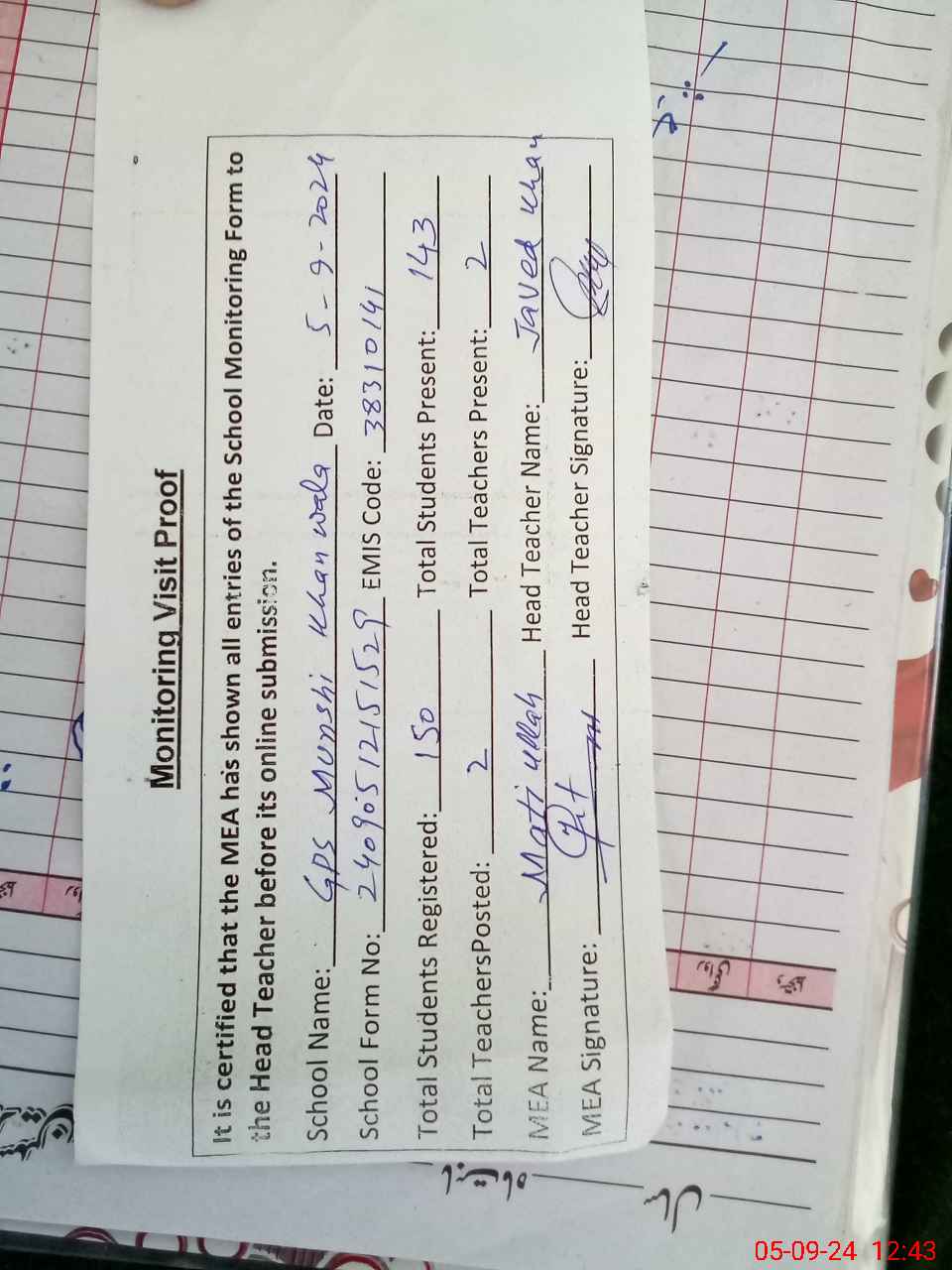| EMIS Code: 38310141 | Name of School: GPS MUNSHI KHAN WALA JALAL PUR PO KALABAGH | |||