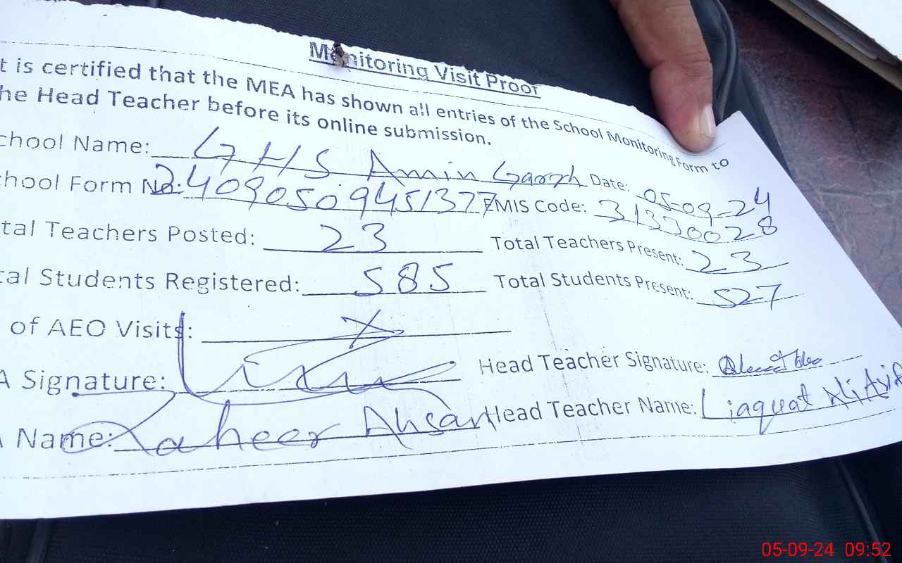 | EMIS Code: 31330028 | Name of School: GHS AMIN GARH | |||