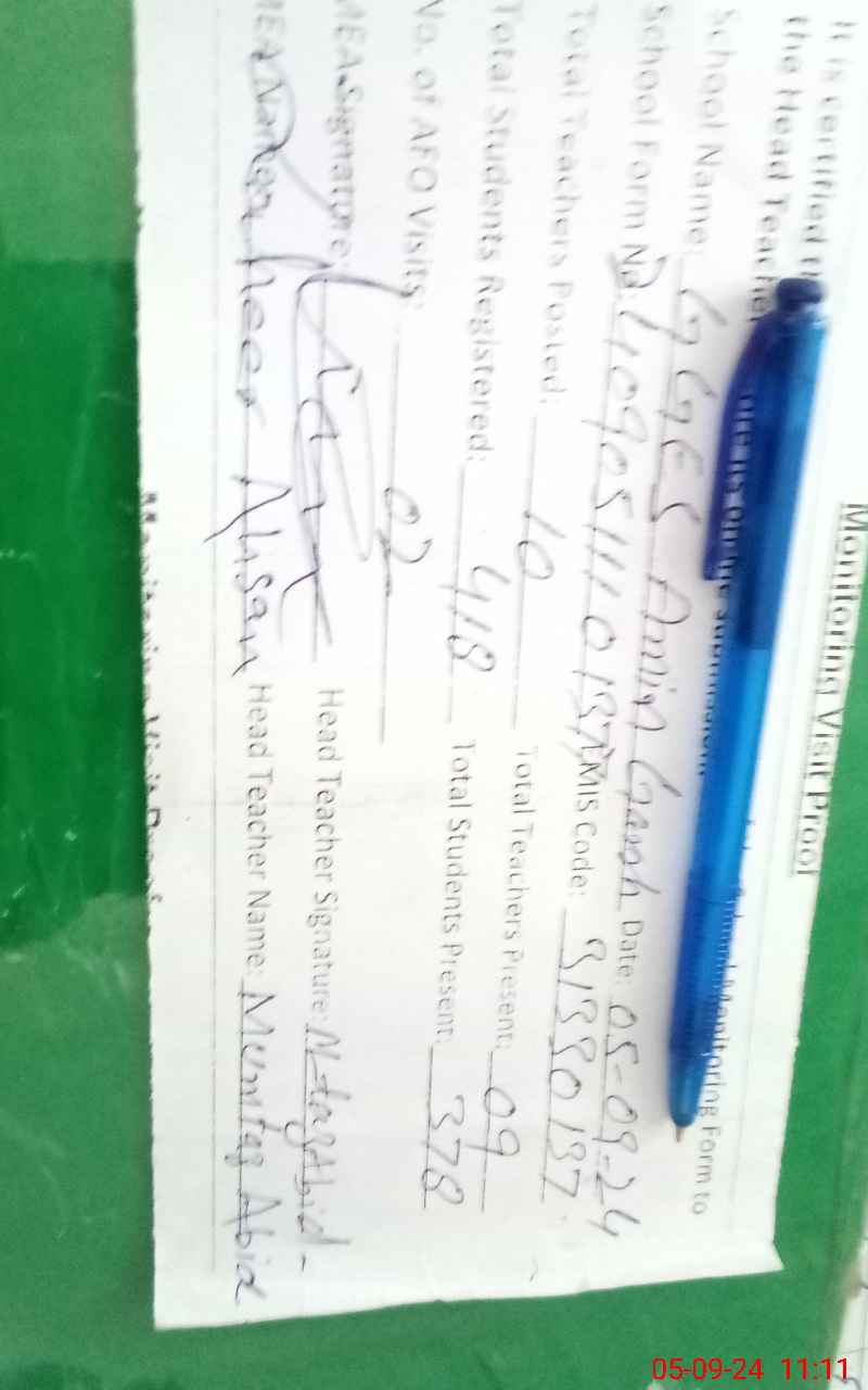 | Certified that this School was Inspected by the Undersigned MEA/DMO Today and the Information Stated Above is as Per Record. | |||||