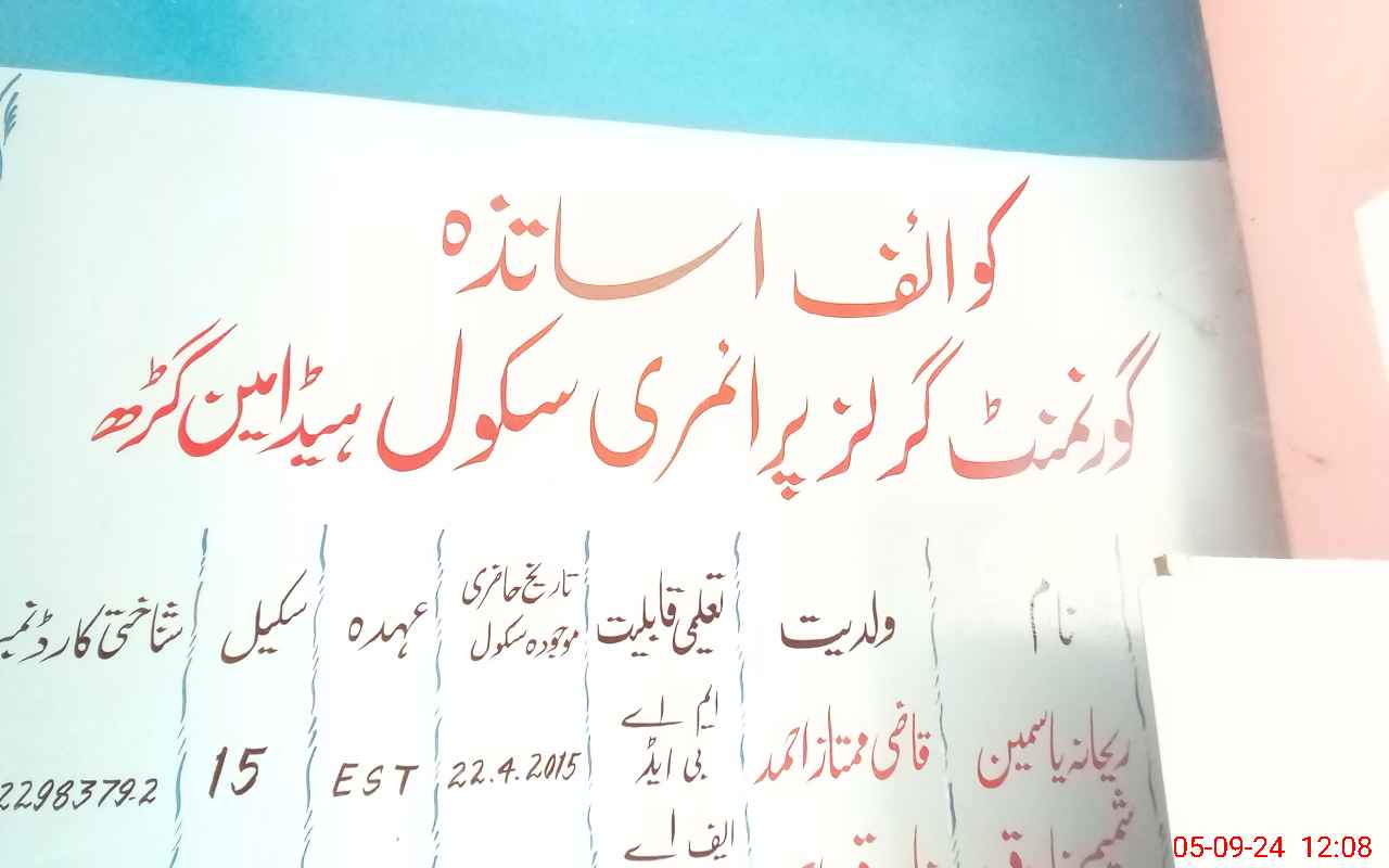 | District: RAHIMYAR KHAN | Tehsil: RAHIMYAR KHAN | Markaz: AMIN GARH - FEMALE | Level: Primary | |