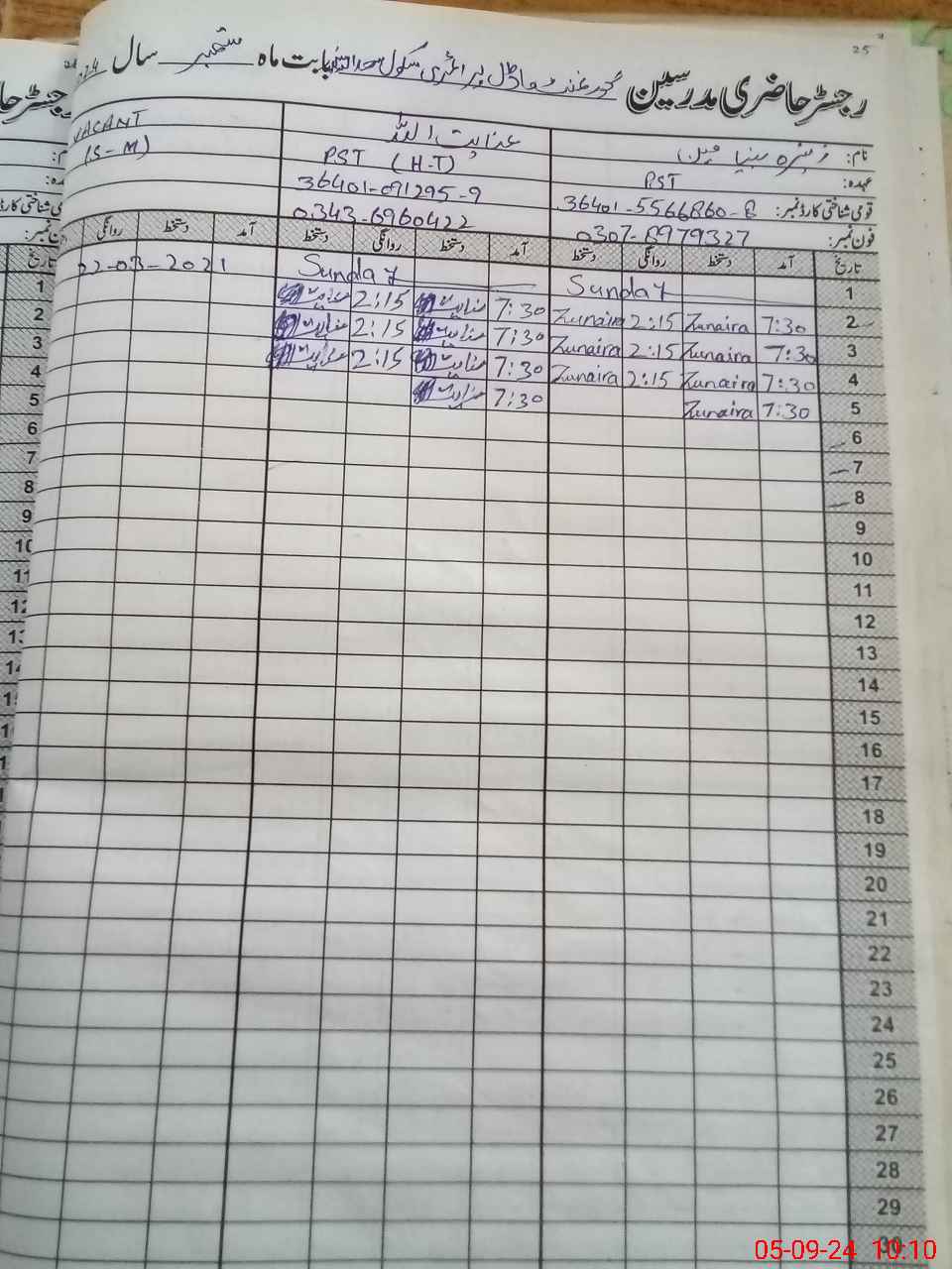 | Name: IN**** UL**** Designation: (School Headmaster's/Headmistress's) PST Phone/Cell Number: 03**** |