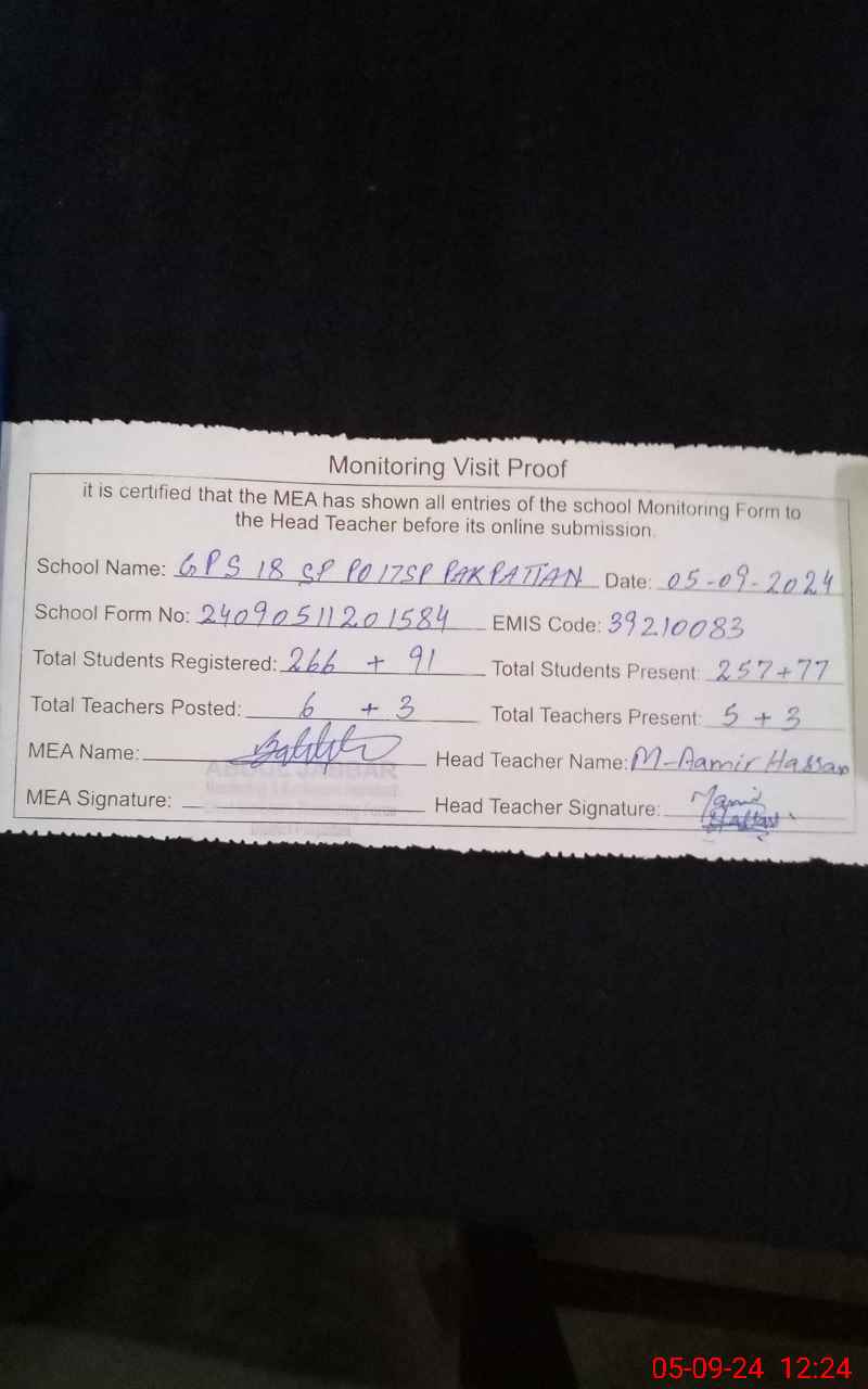 | EMIS Code: 39210083 | Name of School: GPS 18-SP P/O 17/S.P PAKPATTAN | |||