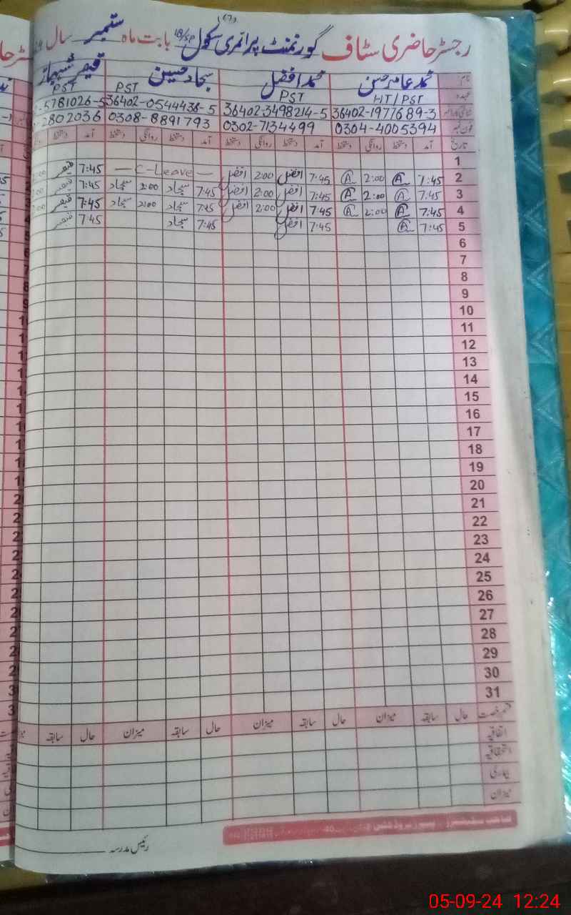 | Name: MAa**** Ha**** Designation: (School Headmaster's/Headmistress's) PST (Sci Math) Phone/Cell Number: 03**** |