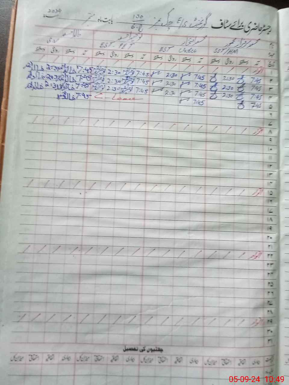 | CNIC | Full Name | Designation | R/C | Absence During Last Calender Month |