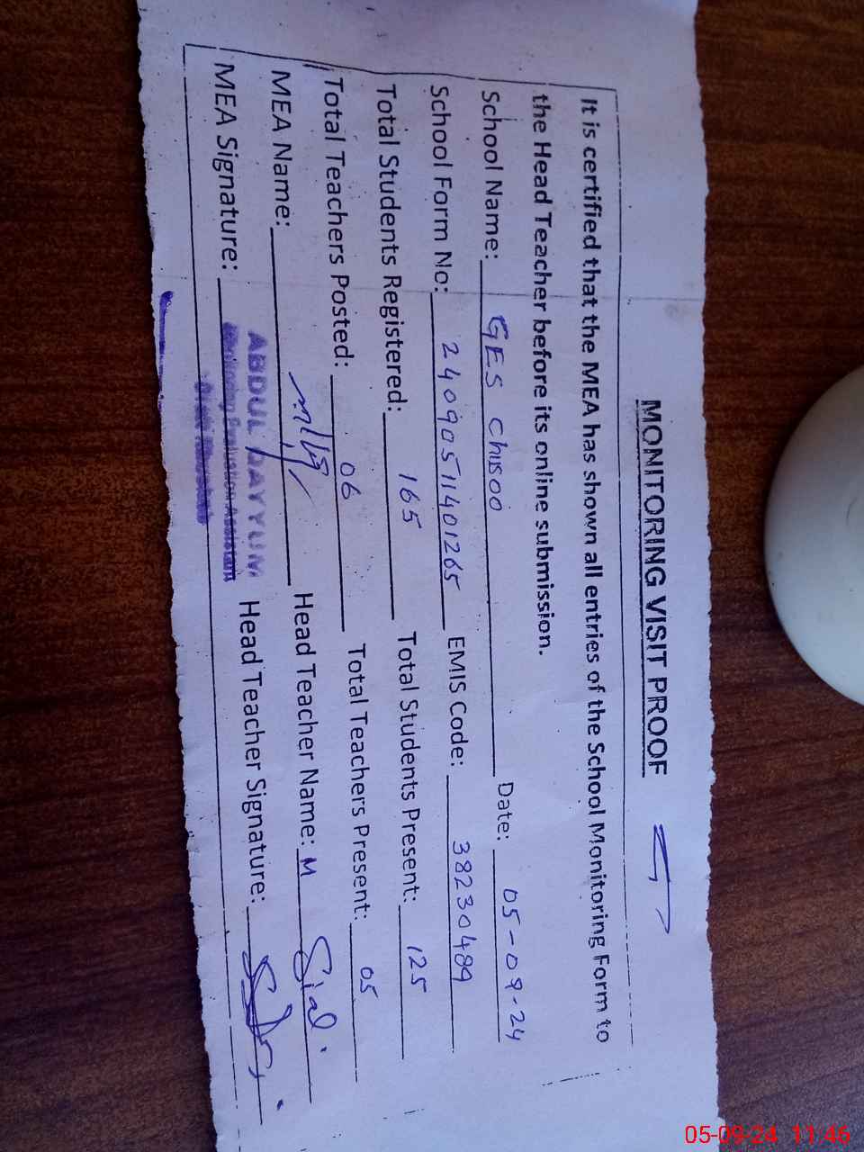 | EMIS Code: 38230489 | Name of School: GES CHUSOO | |||