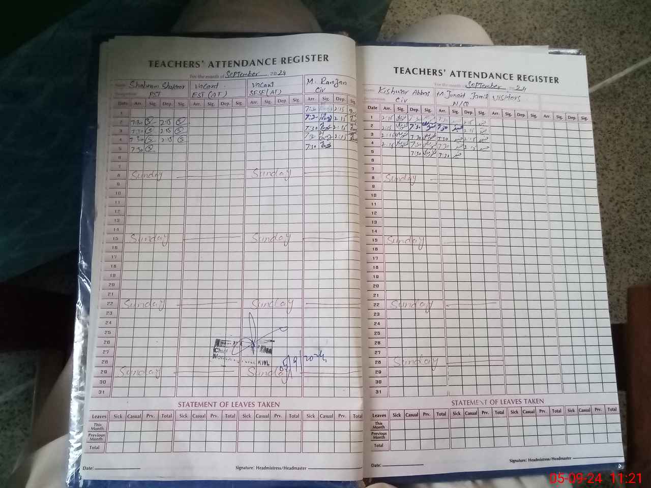 | Name: RU**** KO**** Designation: (School Headmaster's/Headmistress's) SST (SCIENCE ) Phone/Cell Number: 03**** |