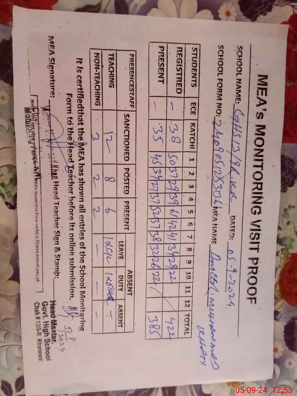 | EMIS Code: 36420074 | Name of School: GHS 13/9-R, KACHA KHUH | |||