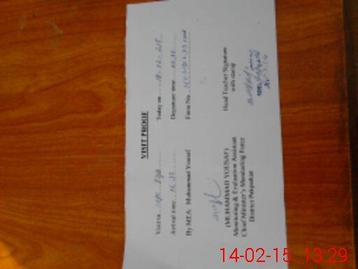 | School Visited by School Health & Nutrition Supervisor (No. of Visits) | 1 | Name1: | M Nadeem | Name2: | |