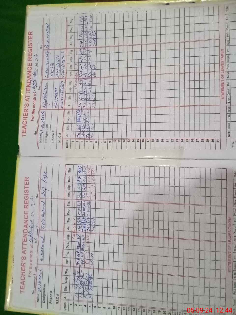 | Name: Mu**** Na**** Designation: (School Headmaster's/Headmistress's) I/c Headmaster Phone/Cell Number: 03**** |