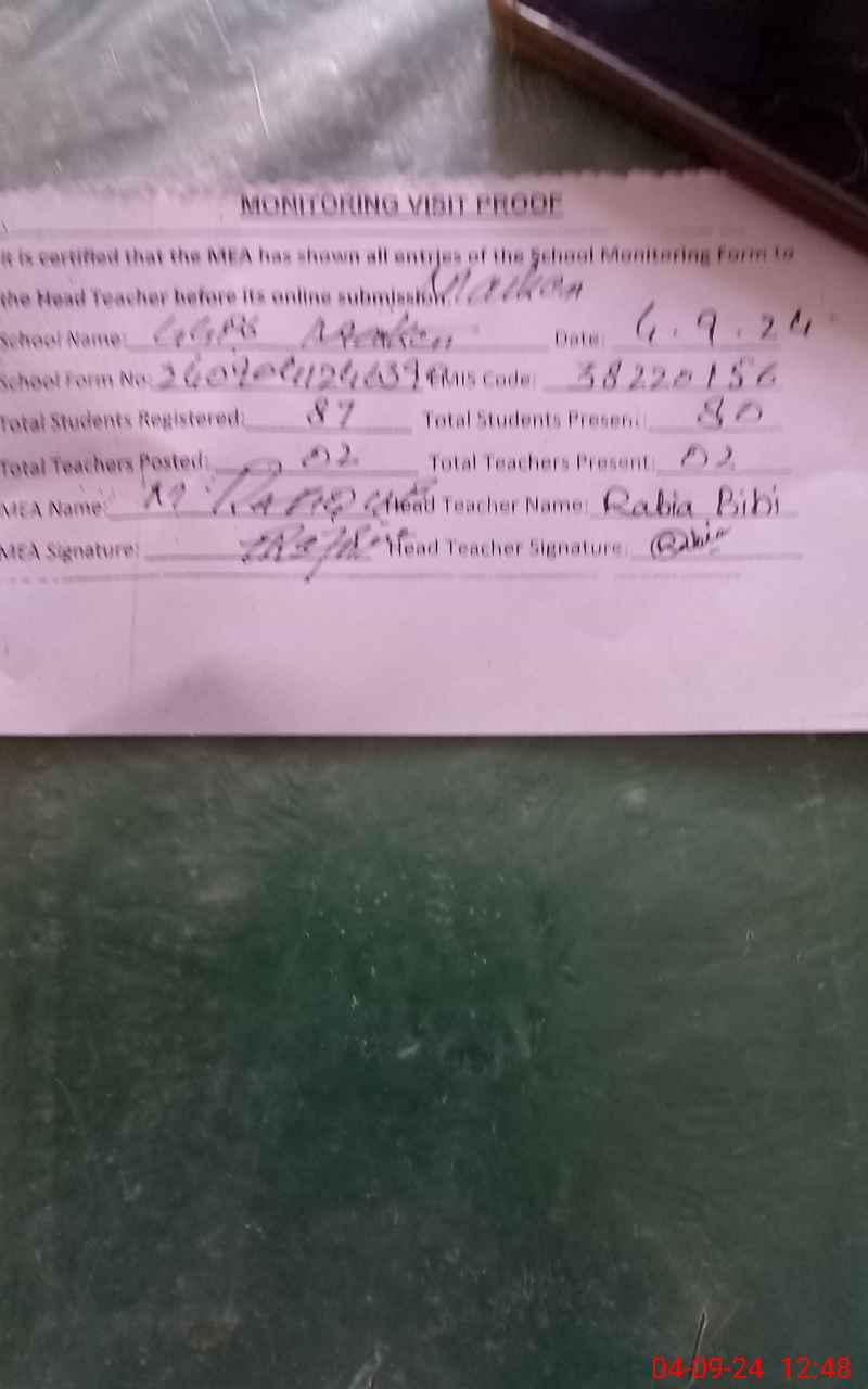 | Certified that this School was Inspected by the Undersigned MEA/DMO Today and the Information Stated Above is as Per Record. | |||||
