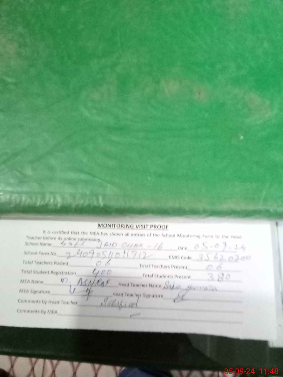 | Certified that this School was Inspected by the Undersigned MEA/DMO Today and the Information Stated Above is as Per Record. | |||||