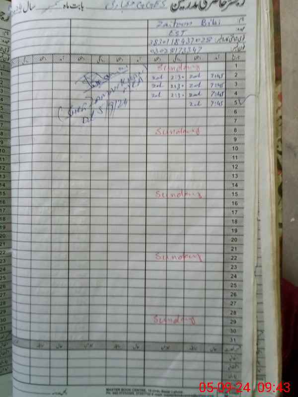 | CNIC | Full Name | Designation | R/C | Absence During Last Calender Month |