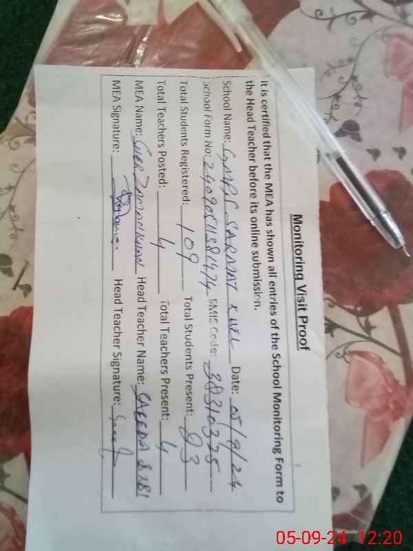| EMIS Code: 38310325 | Name of School: GMPS SARMAT KHEL | |||