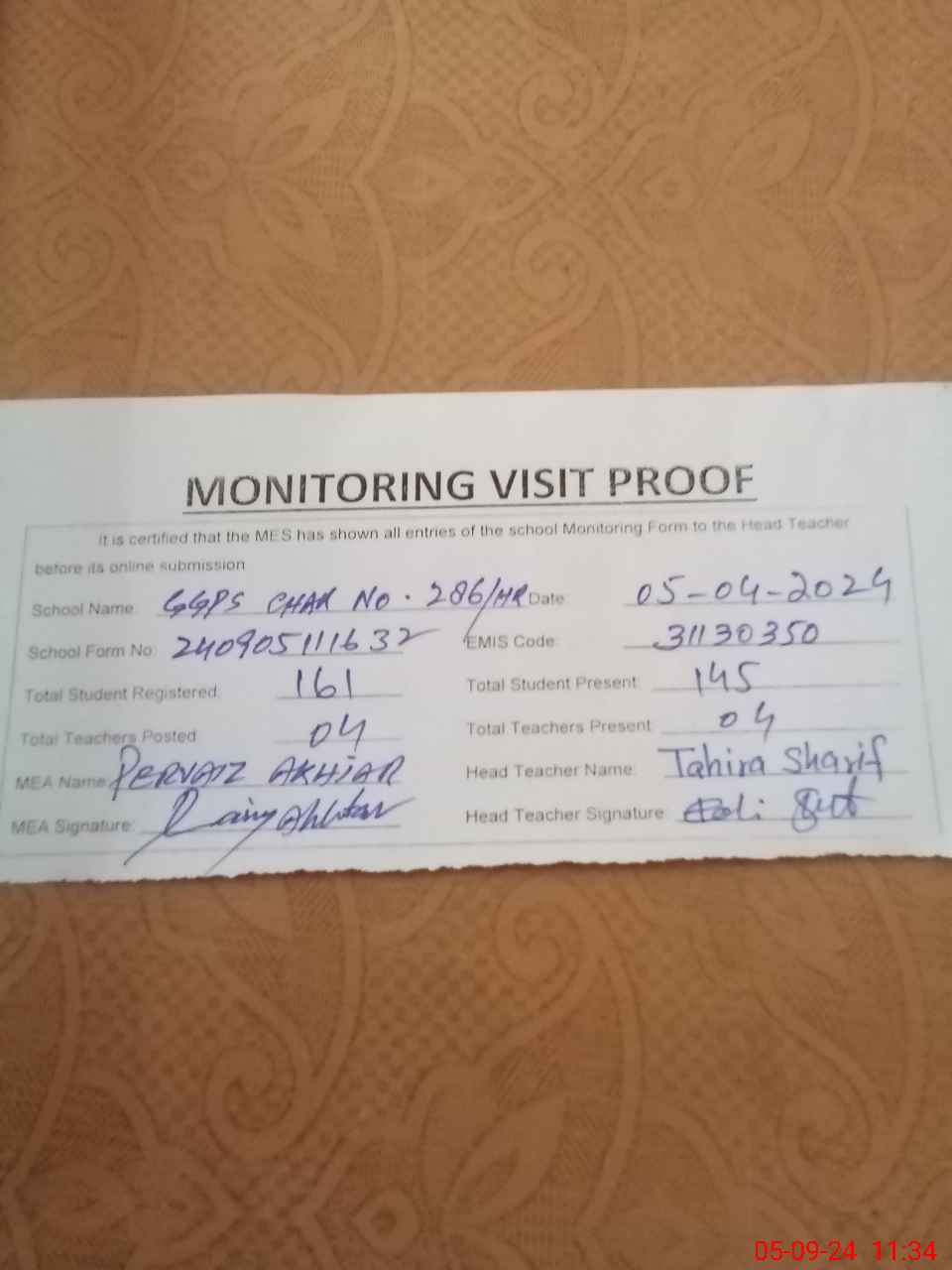 | EMIS Code: 31130350 | Name of School: GGPS CHAK NO 286 HR | |||