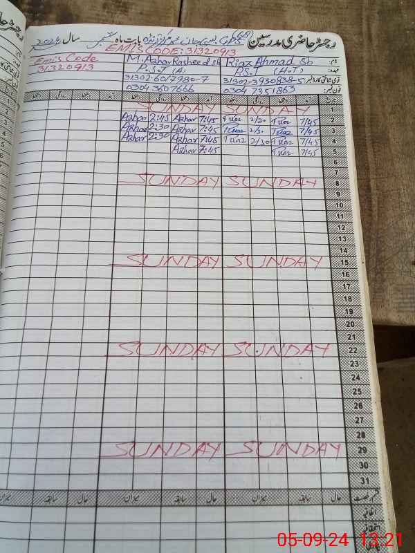 | Name: RI**** AH**** Designation: (School Headmaster's/Headmistress's) PST/PTC/JV Phone/Cell Number: 03**** |