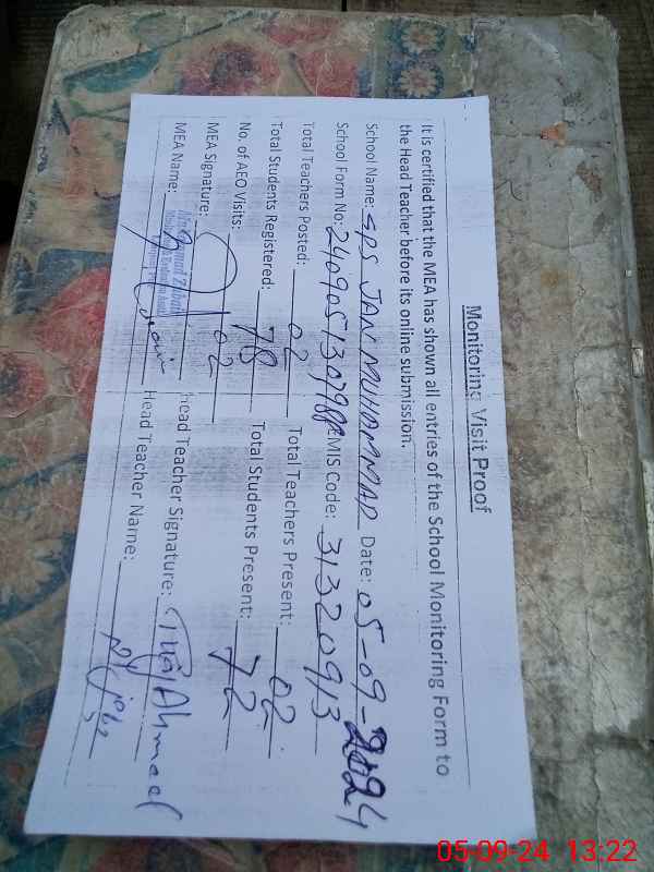 | EMIS Code: 31320913 | Name of School: GPS JAN MUHAMMAD | |||