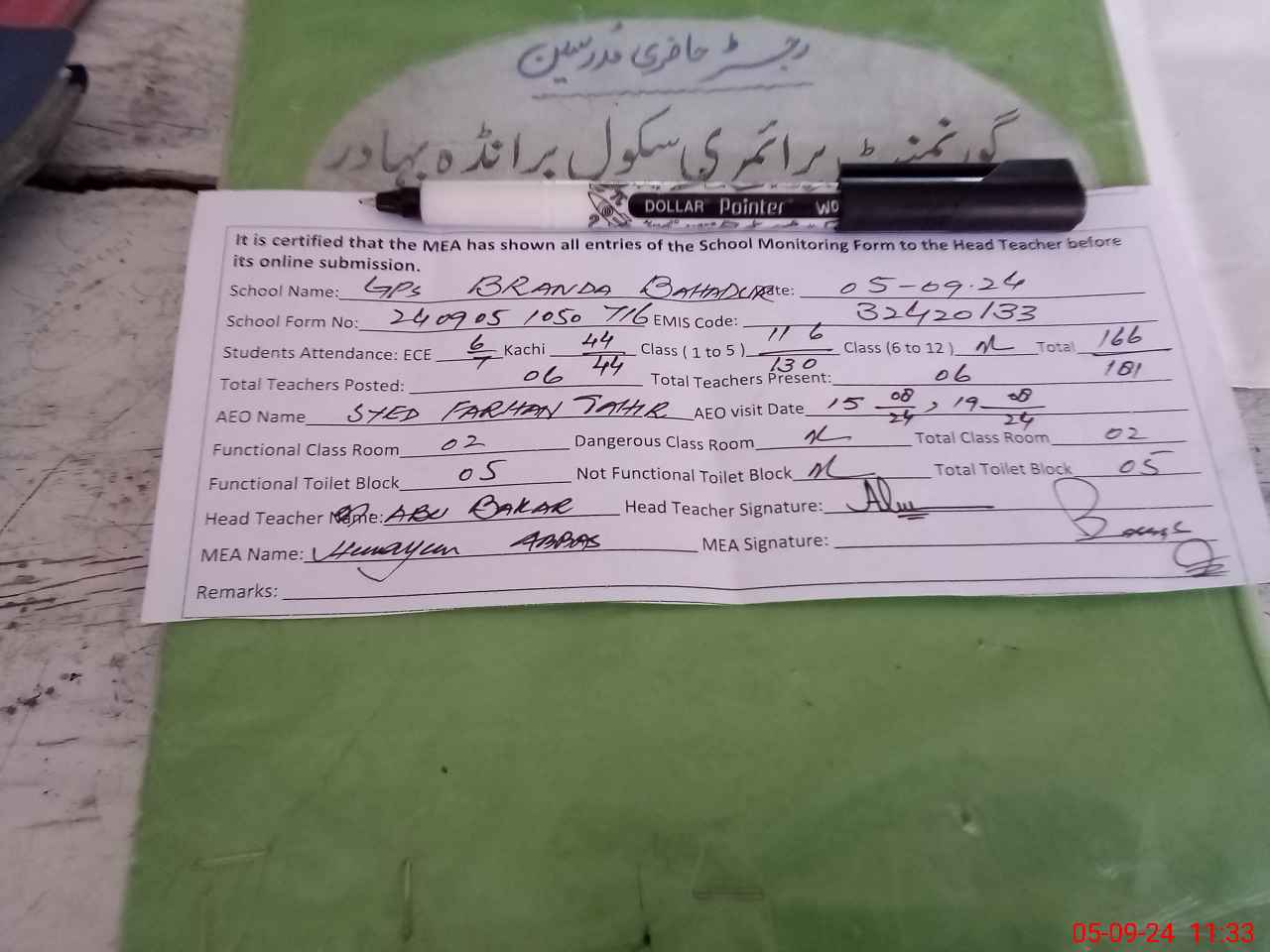 | EMIS Code: 32420133 | Name of School: GPS BARANDA BAHADUR | |||