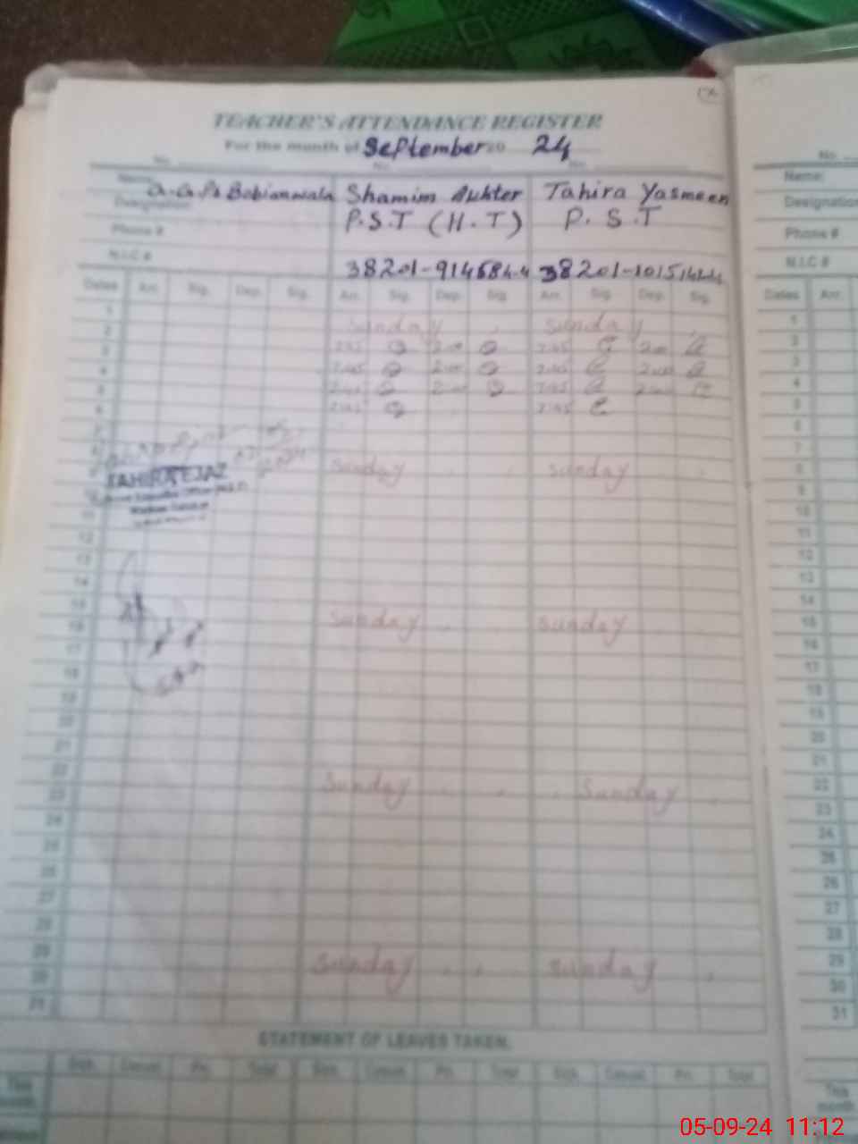 | Name: Sh**** Ak**** Designation: (School Headmaster's/Headmistress's) PST Phone/Cell Number: 03**** |