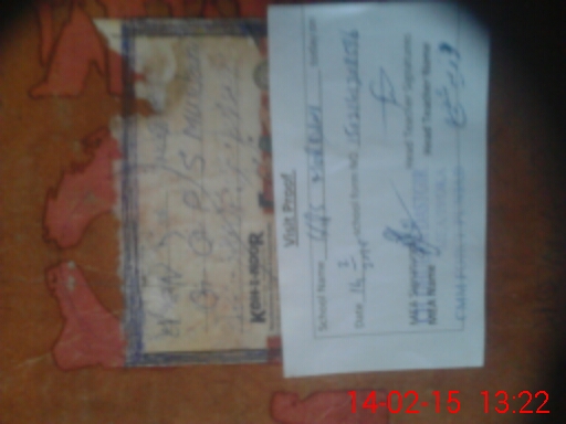 | School Visited by School Health & Nutrition Supervisor (No. of Visits) | 1 | Name1: | M Abbas | Name2: | |