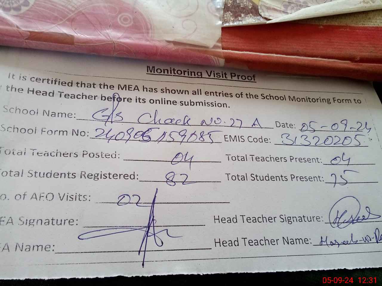 | EMIS Code: 31320205 | Name of School: GPS CHAK 27/A | |||